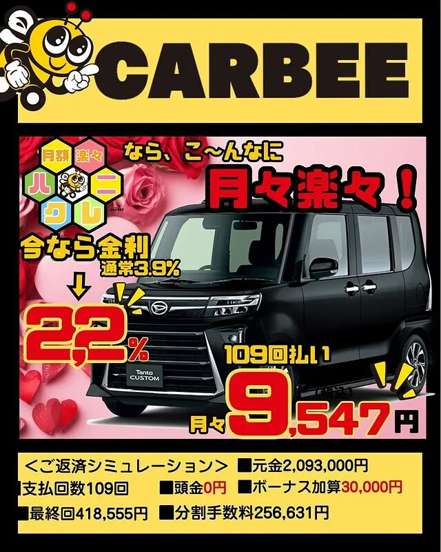 CARBEEセレクト車第1弾としてタントカスタムを限定で1台ご用意いたしました!